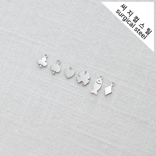 [5-6731-08] 써지컬스틸 팬던트 디자인 미니 참 / 무도금 [10개]