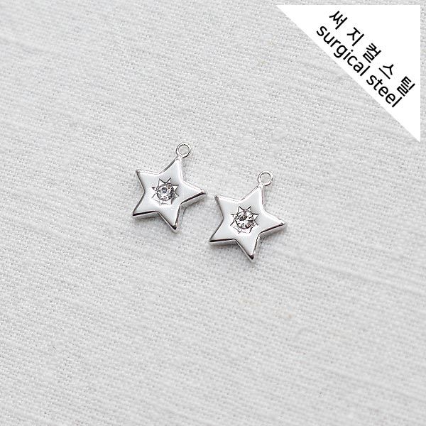 [5-6616-08] 써지컬스틸 팬던트 태양별큐빅 12*13.5mm [10개]