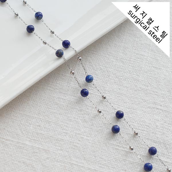 [8-0050-303A] 써지컬스틸 체인 원석라운드 / 라피스라즐리 [2M]