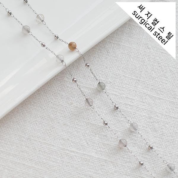 [8-0050-303D] 써지컬스틸 체인 원석라운드 / 하울라이트 [2M]