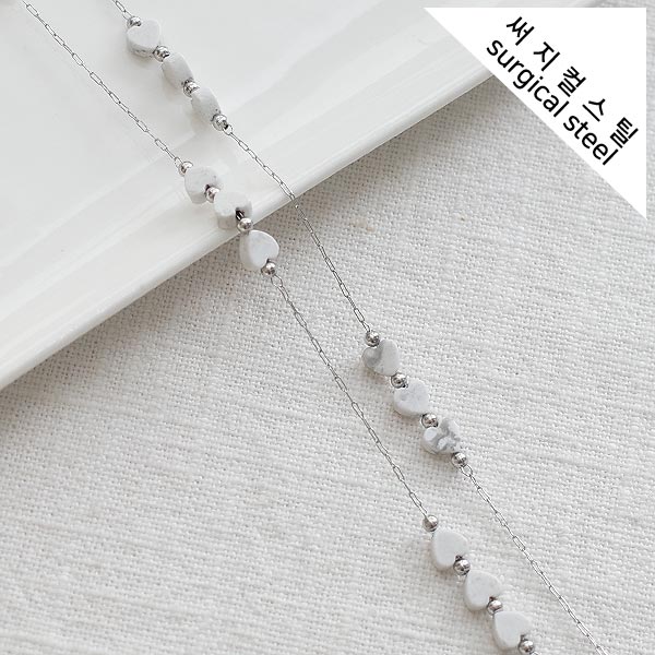 [8-0050-304B] 써지컬스틸 체인 하트 원석 / 하울라이트 [2M]
