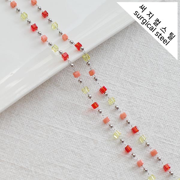 [8-0050-304C] 써지컬스틸 체인 크리스탈 큐브 후르츠믹스 [2M]