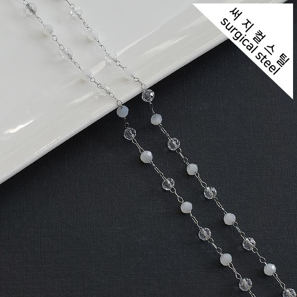 [8-0050-54A] 써지컬스틸 체인 아크릴진주3mm/화이트 무도금 [2M]