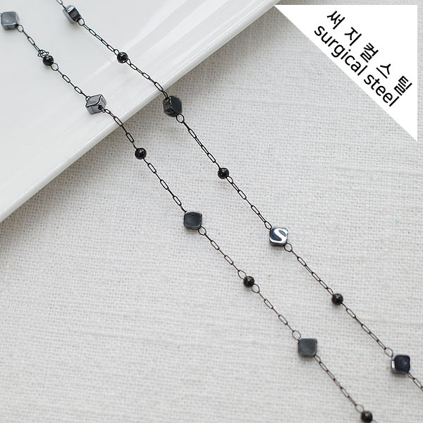 [8-0050-22B] 써지컬스틸 체인 헤머타이트 마름모+블랙볼 [2M]
