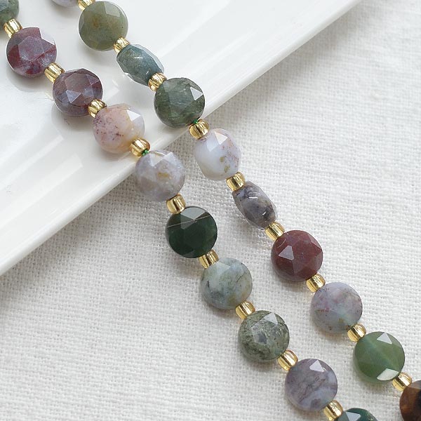 [4-0063-02] 납작컷팅 약8mm 천연원석/인도마노 [2줄(약72개)]