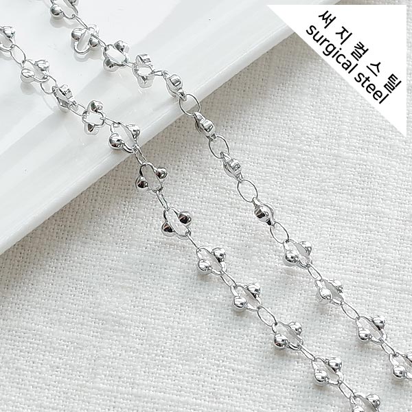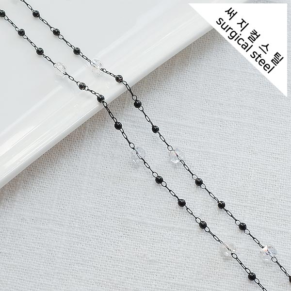 [8-0050-288A] 써지컬스틸 체인 블랙 볼+비즈꽃 [2M]