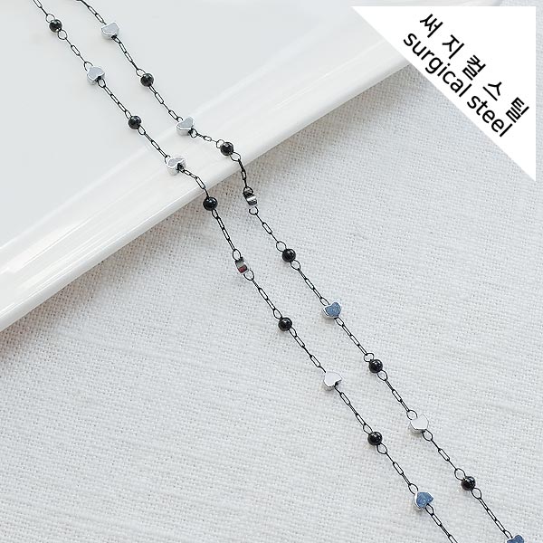 [8-0050-288B] 써지컬스틸 체인 블랙 볼+헤머타이트하트 [2M]