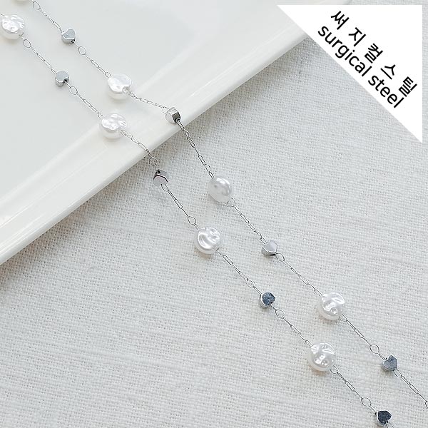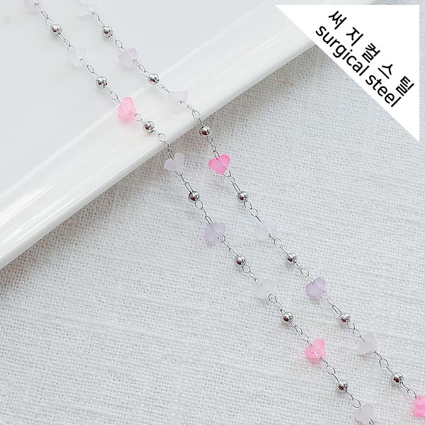 [8-0050-289A] 써지컬스틸 체인 아크릴진주+헤머타이트하트 [2M]