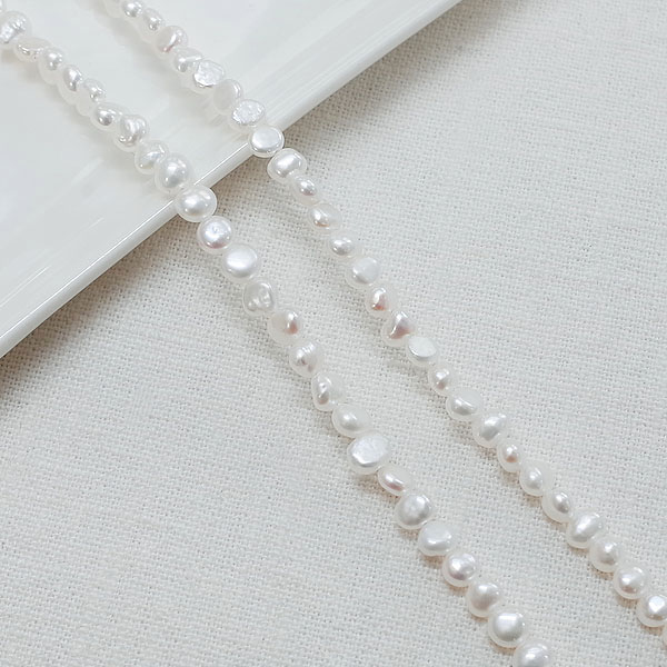 [3-009-04] 담수진주 A급 못난이납작 약4~5mm [3줄(약105cm)]