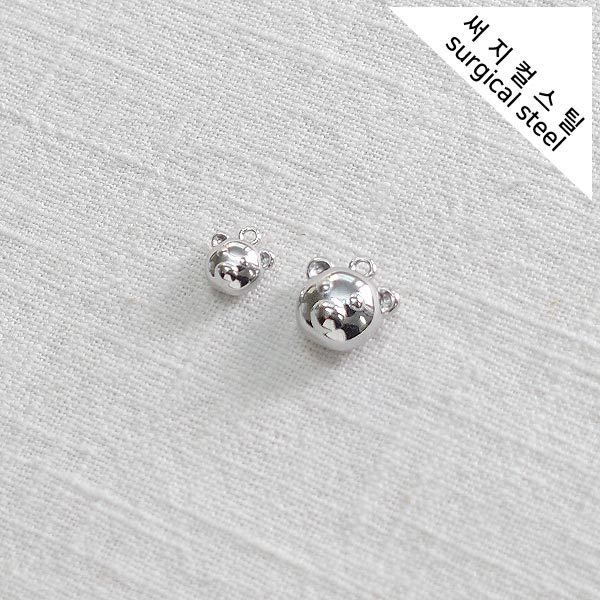 [5-6598-13] 써지컬스틸 팬던트 곰돌이얼굴 소/대 [10개]
