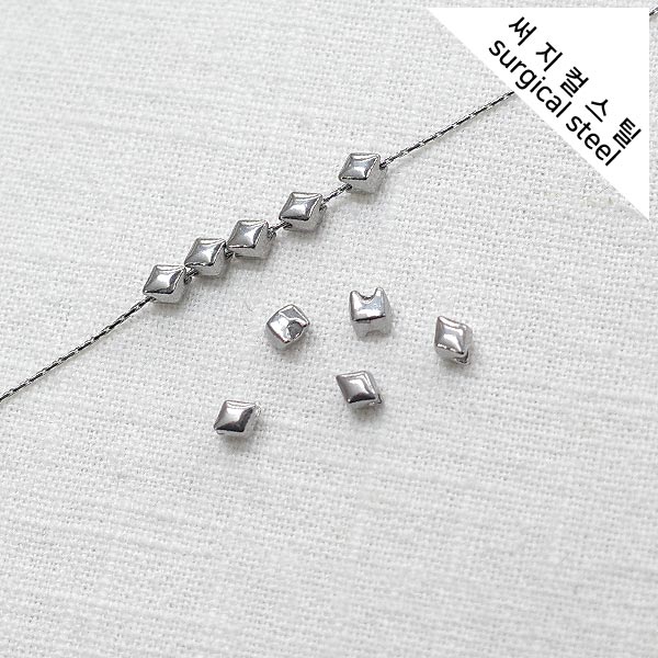 [5-6607-14] 써지컬스틸 통과형 미니 통통 마름모 4.5*3.5mm [50개]