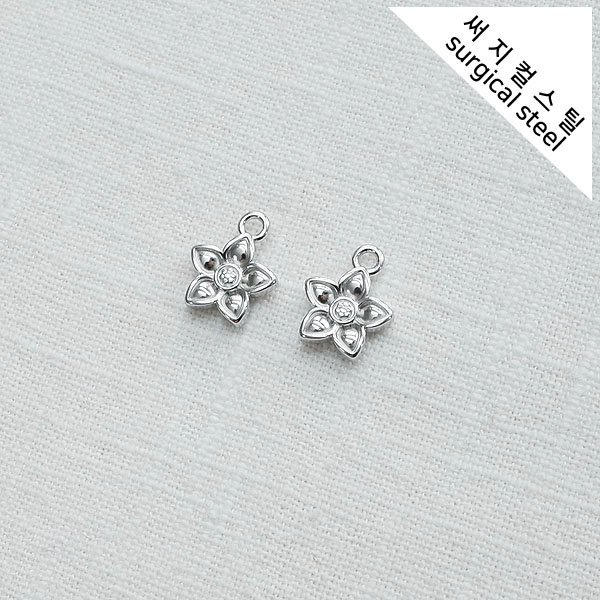 [5-6813-02] 써지컬스틸 팬던트 큐빅 동글 다섯잎꽃 10*12.5mm [10개]