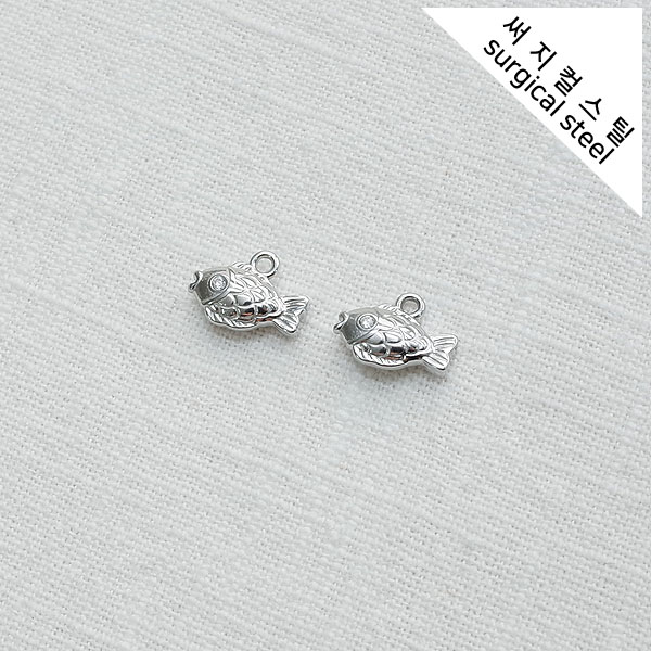 [5-6813-07] 써지컬스틸 팬던트 양면 뻐끔 붕어 12*8.5mm [10개]