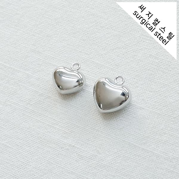 [5-6600-09] 써지컬스틸 팬던트 플랫볼드 하트 소/대 [10개]