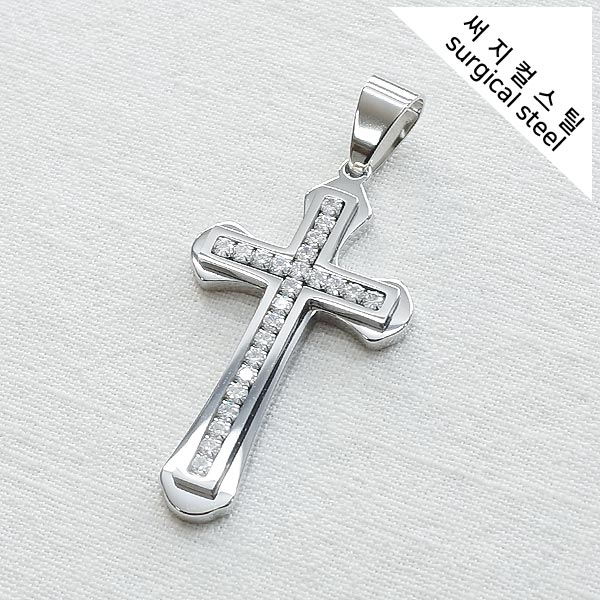[5-6747-01] 써지컬스틸 팬던트 사방큐빅 십자가 20.5*28mm [10개]