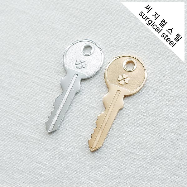 [5-6739-10] 써지컬스틸 팬던트 클로버 행운 열쇠 20*50mm [10개]