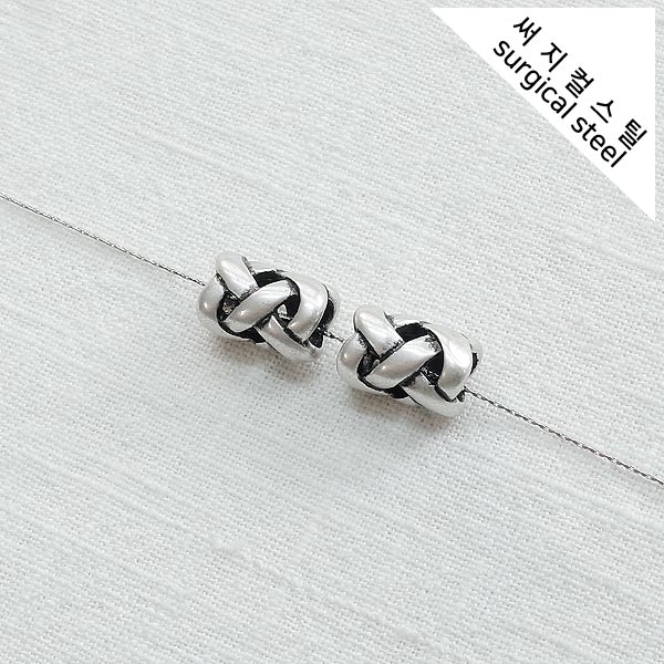 [5-6629-12] 써지컬스틸 통과형 엔틱실버 꼬임 원통 14mm [10개]
