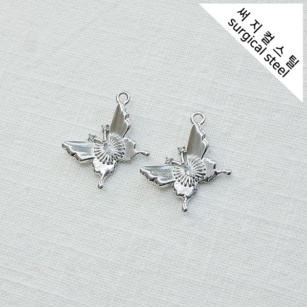 [5-6588-10] 써지컬스틸 팬던트 큐빅 활짝나비 21*18mm [10개]