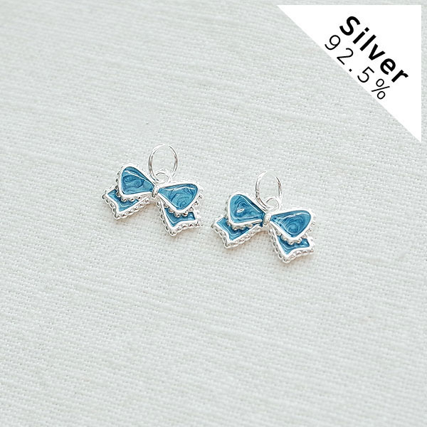 [7-0005-10] 은(silver) 푸른 도트리본 16*10mm 무도금 실버925 [3개]