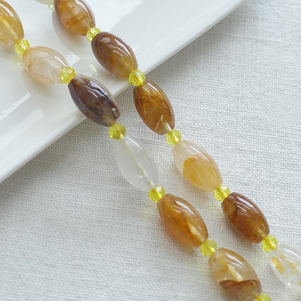 [4-0062-18] 라운드타원 천연원석/옐로우쿼츠 [2줄(약42개)]