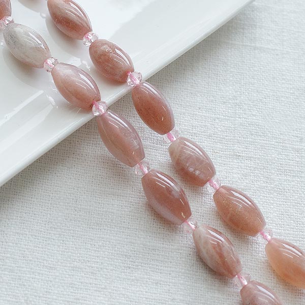 [4-0062-19] 라운드타원 천연원석/피치문스톤 [2줄(약42개)]