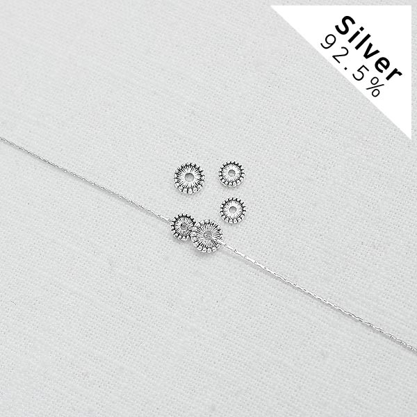 [7-0028-08] 은(silver) 엔틱 톱니 론델 소/대 무도금 실버925 [5개]