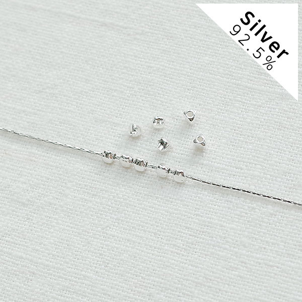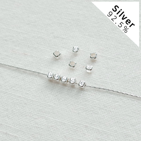 [7-0031-08] 은(silver) 통과형 사각 조약돌 3mm 무도금 실버925 [50개]
