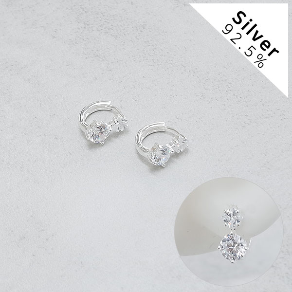 [8-8877-71] 은(silver) 큐빅 트윈 원터치 무도금 11mm 실버925 [2쌍(4개)]