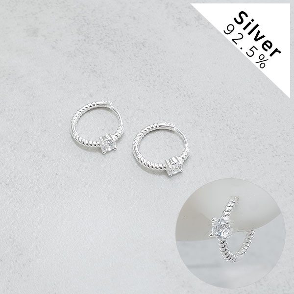 [8-8877-32] 은(silver) 큐빅 트위스트 원터치 10mm 무도금 실버925 [2쌍(4개)]