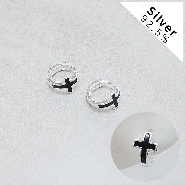 [8-8878-145] 은(silver) 에폭 블랙 십자라인 원터치 10.5mm 무도금 실버925 [2쌍(4개)]