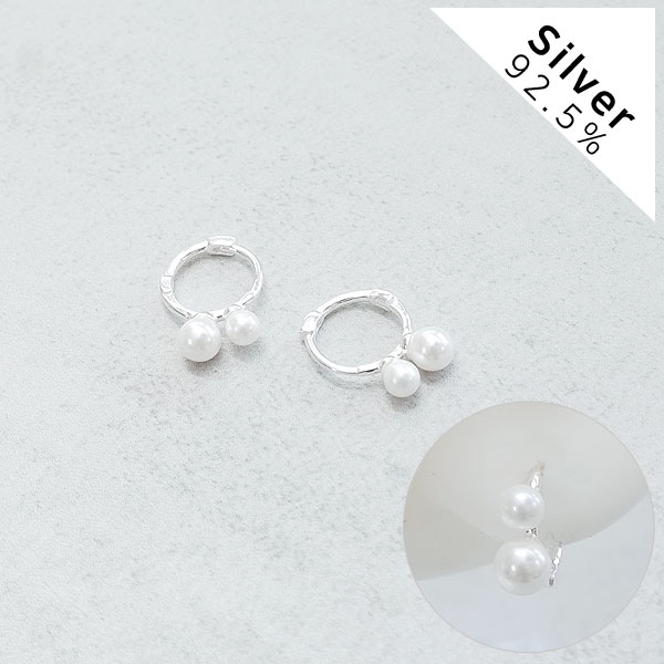 [8-8878-151] 은(silver) 더블 진주 방울 원터치 14mm 무도금 실버925 [2쌍(4개)]
