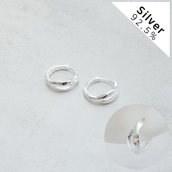 [8-8877-72] 은(silver) 심플 트위스트 원터치 무도금 13mm 실버925 [2쌍(4개)]