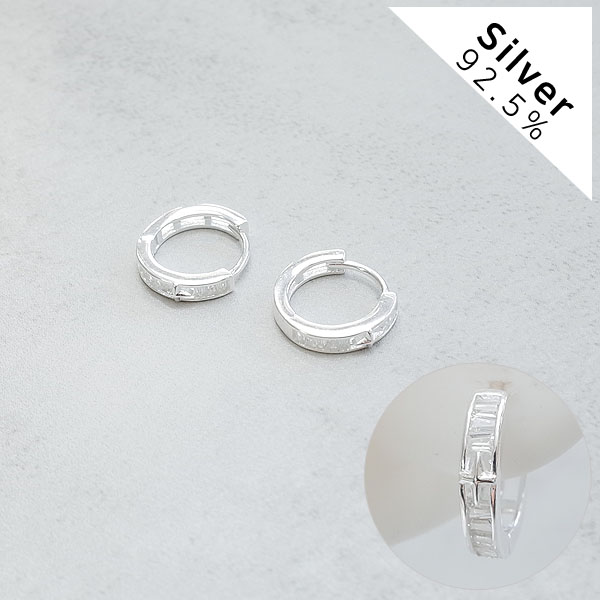 [8-8878-144] 은(silver) 큐빅 십자라인 원터치 11mm 무도금 실버925 [2쌍(4개)]