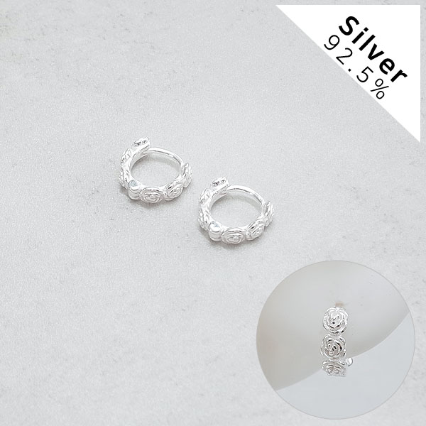 [8-8878-163] 은(silver) 장미패턴 원터치 10mm 무도금 실버925 [2쌍(4개)]