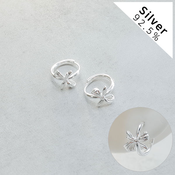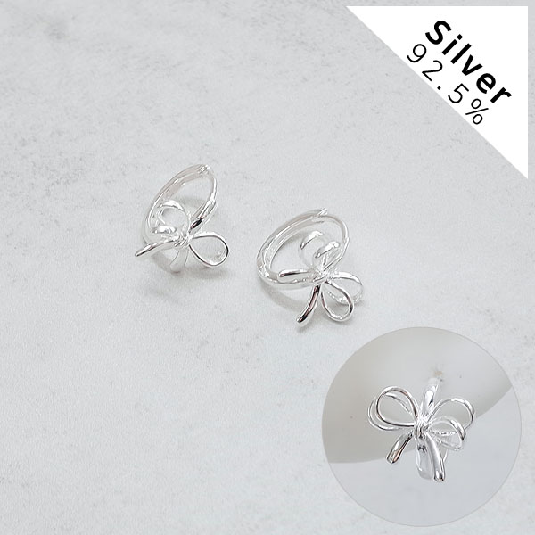 [8-8877-70] 은(silver) 주름리본 원터치 무도금 14mm 실버925 [2쌍(4개)]