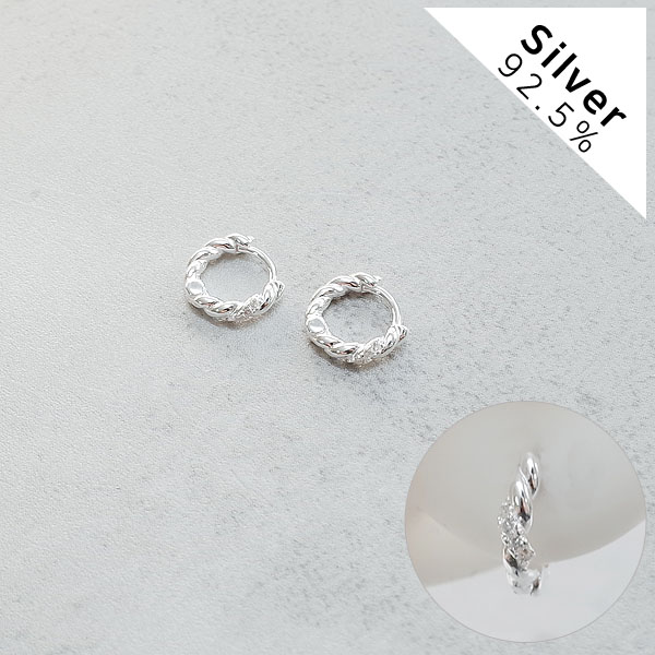 [8-8878-162] 은(silver) 심플 꼬임 원터치 13mm 무도금 실버925 [2쌍(4개)]