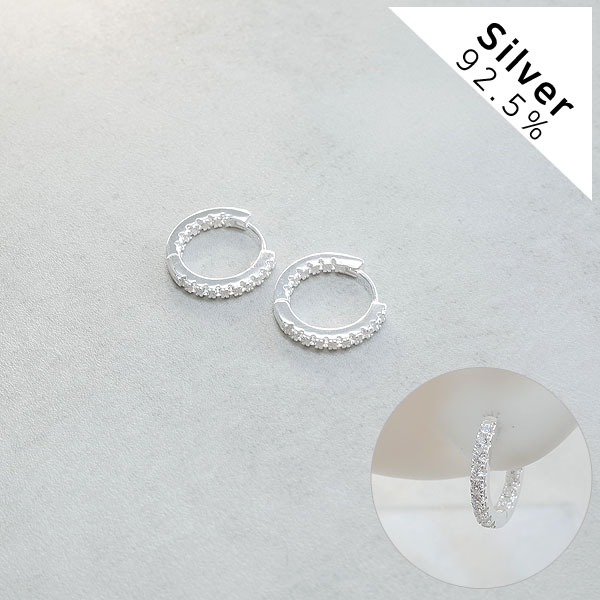 [8-8877-62] 은(silver) 큐빅 트윙클 원터치 15mm 무도금 실버925 [2쌍(4개)]