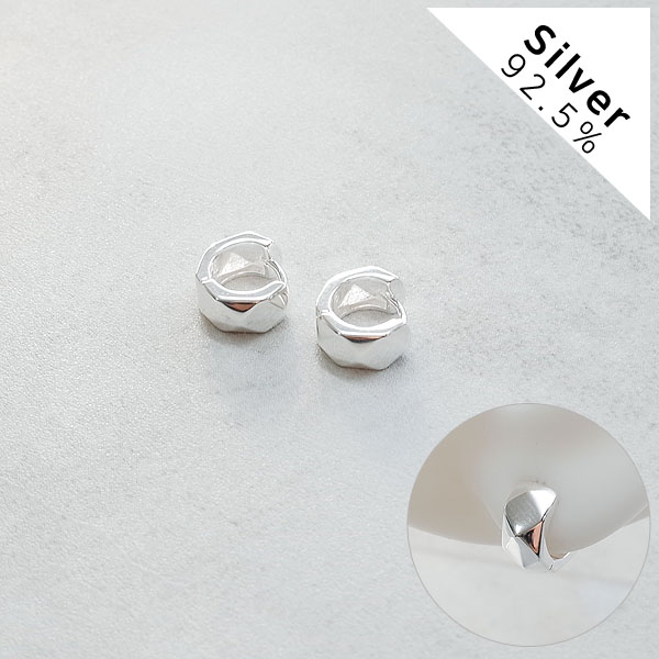 [8-8877-64] 은(silver) 심플 볼드각 원터치 10mm 무도금 실버925 [2쌍(4개)]