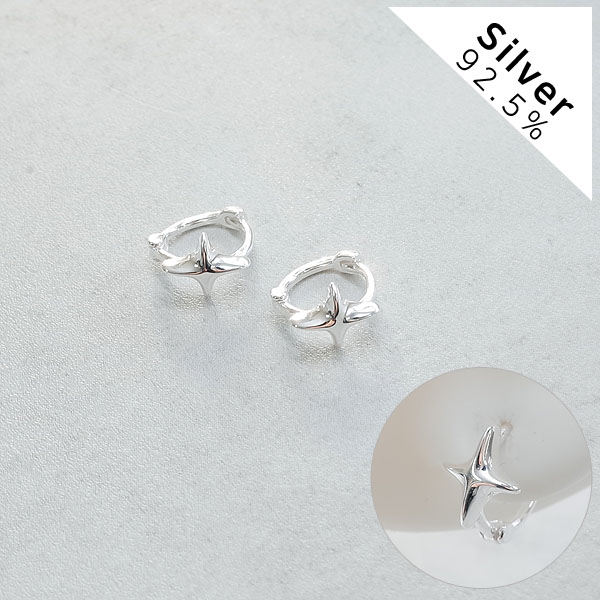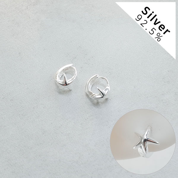 [8-8877-66] 은(silver) 심플 불가사리 원터치 11mm 무도금 실버925 [2쌍(4개)]
