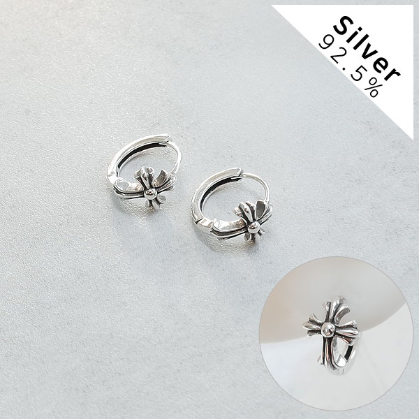 [8-8877-67] 은(silver) 엔틱 플레어십자가 원터치 14mm 실버925 [2쌍(4개)]