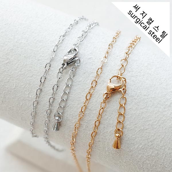 [8-7132-01] 써지컬스틸 0.3 입술체인 목걸이줄 40+5cm (316L) [10개]