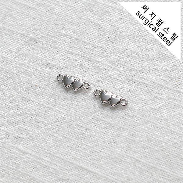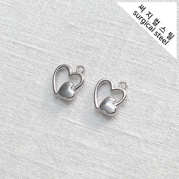 [5-6610-13] 써지컬스틸 팬던트 양고리 동글더블하트 12.5*5mm [50개]
