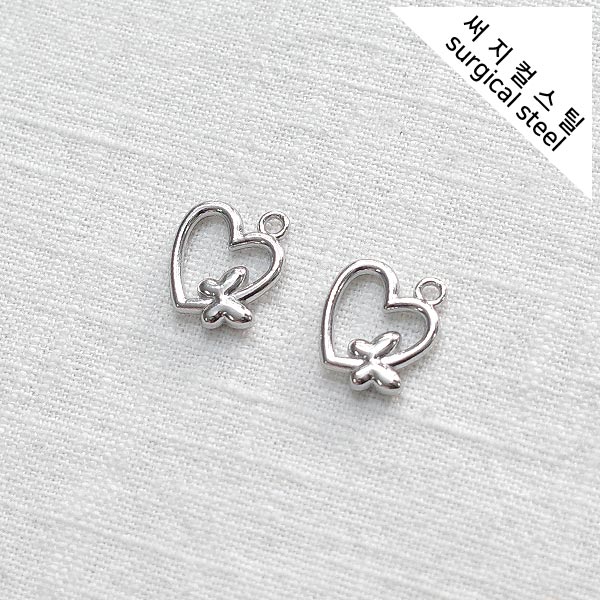 [5-6608-06] 써지컬스틸 팬던트 나비장식 하트라인 15*16mm [10개]