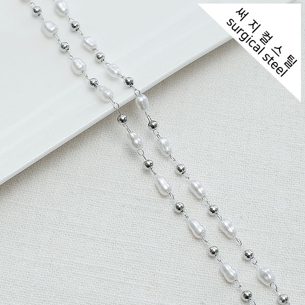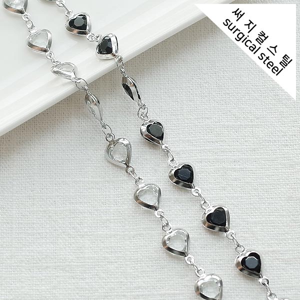 [8-0050-289A] 써지컬스틸 체인 아크릴진주+헤머타이트하트 [2M]