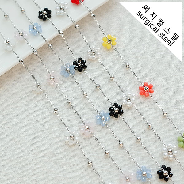 [8-0050-218A] 써지컬스틸 체인 3mm볼+비즈꽃(약52개) [2M]