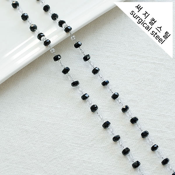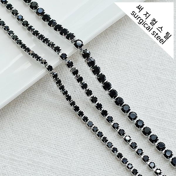 [8-0050-142A] 써지컬스틸 체인 크리스탈 타이어론델 / 블랙 [2M]