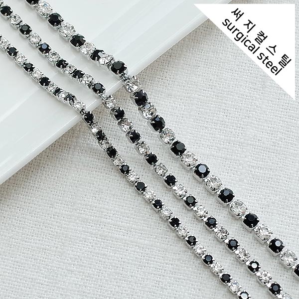 [8-0050-220] 써지컬스틸 체인 스톤줄란 / 블랙+화이트 [2M]