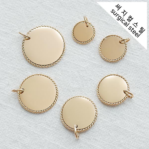 [5-6762-00] 팬던트 써지컬스틸 로프메달 / 골드 10~20mm [10개]