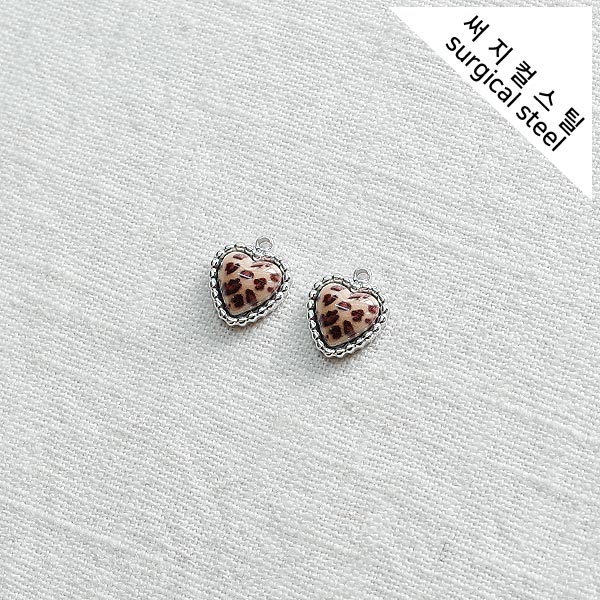 [5-6750-11] 써지컬스틸 팬던트 호피무늬 볼록하트/소 10.5*12mm [10개]