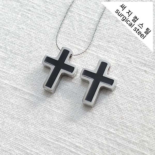 [5-6698-13] 써지컬스틸 팬던트 에폭 블랙 볼드 십자가 15*20mm [10개]